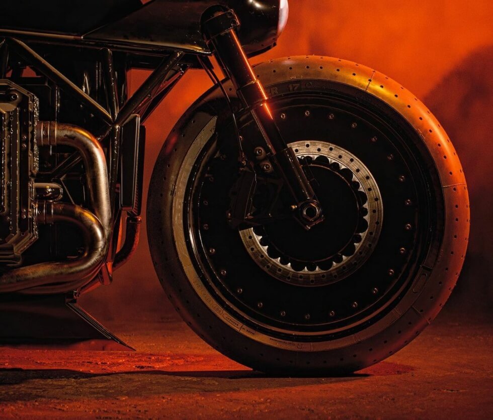 Thus, the idea behind this moto is more on the practical side. It looks like an aftermarket build that Gotham’s protector worked on during his free time. The blackout bike uses a trellis frame that holds a custom double twin boxer powerplant with an industrial cover.