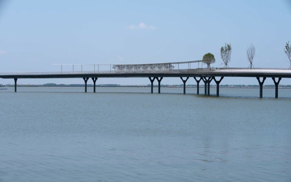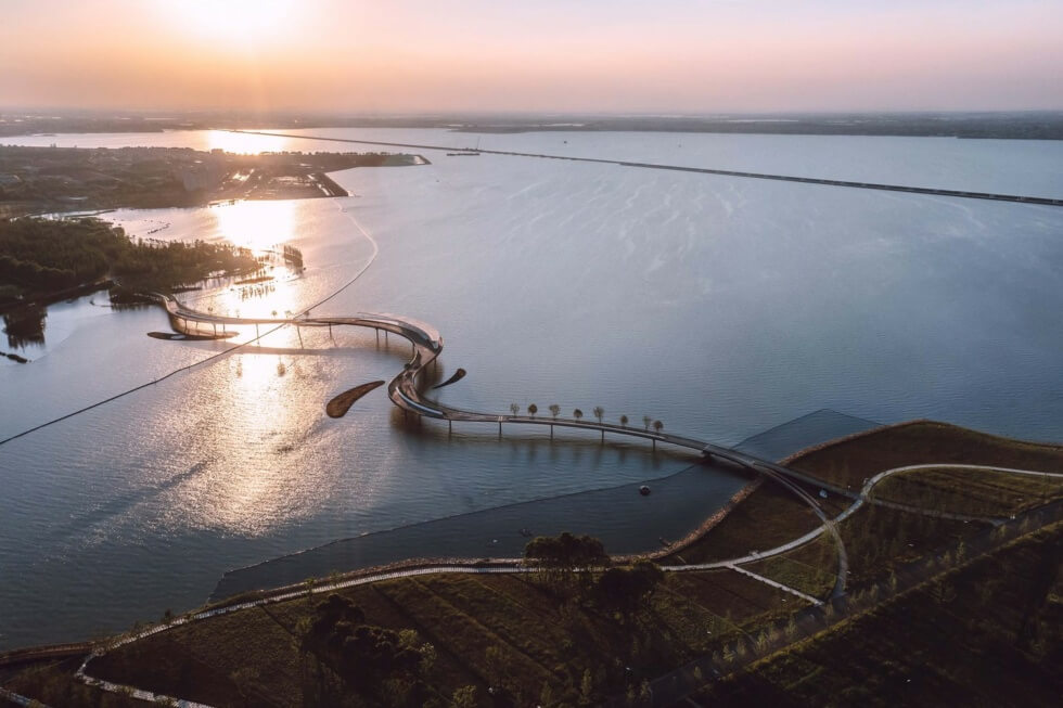 This infrastructure is an artistic expression that highlights the beauty of China’s Yuandang Lake and its surroundings. Normally, most professionals will design these in a way that gets you from point A to point B in the shortest time possible.