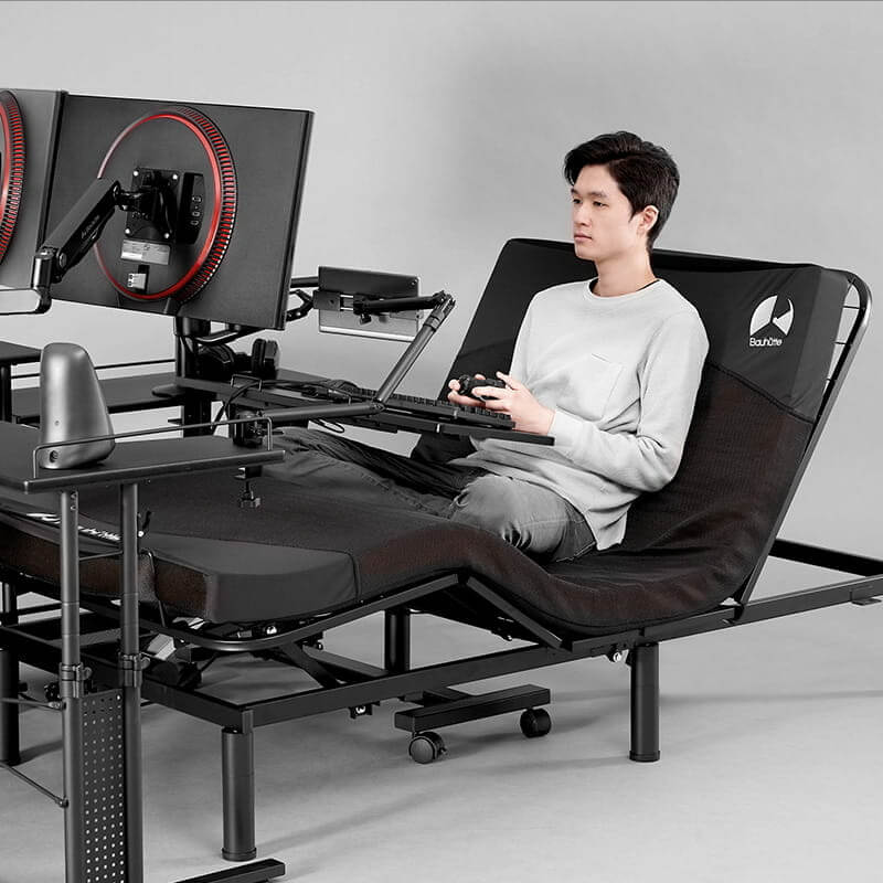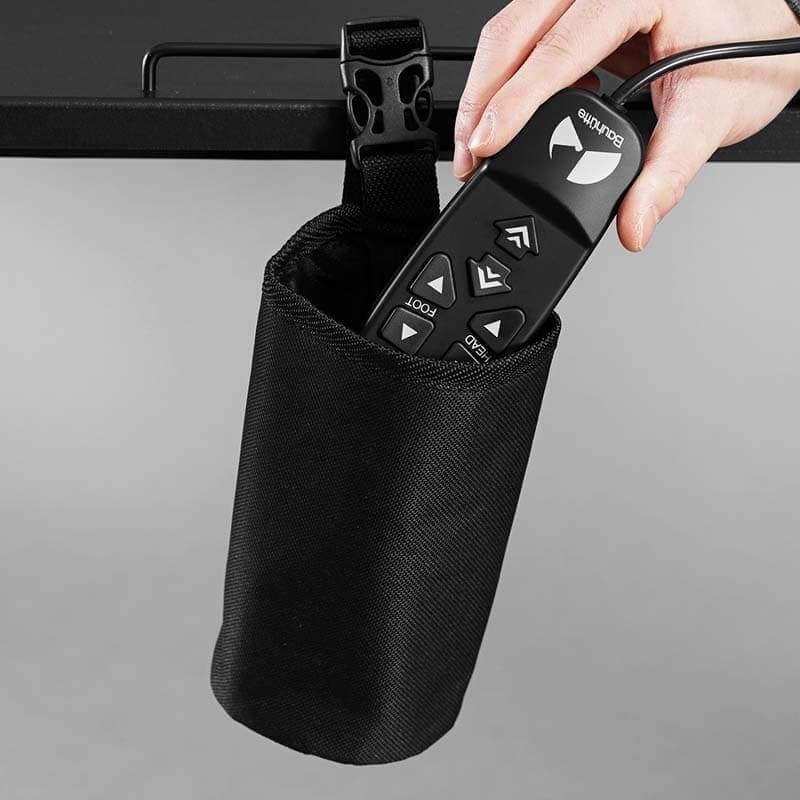 You can set these positions via a controller that slots into a clip-on holder at the side of the bed frame. Bauhütte recommends that you pair the BGB-100FA with their BHD-1200BD Bed Desk. The latter is height-adjustable and comes with accessories to store controllers, drinks, cup noodles, and more.
