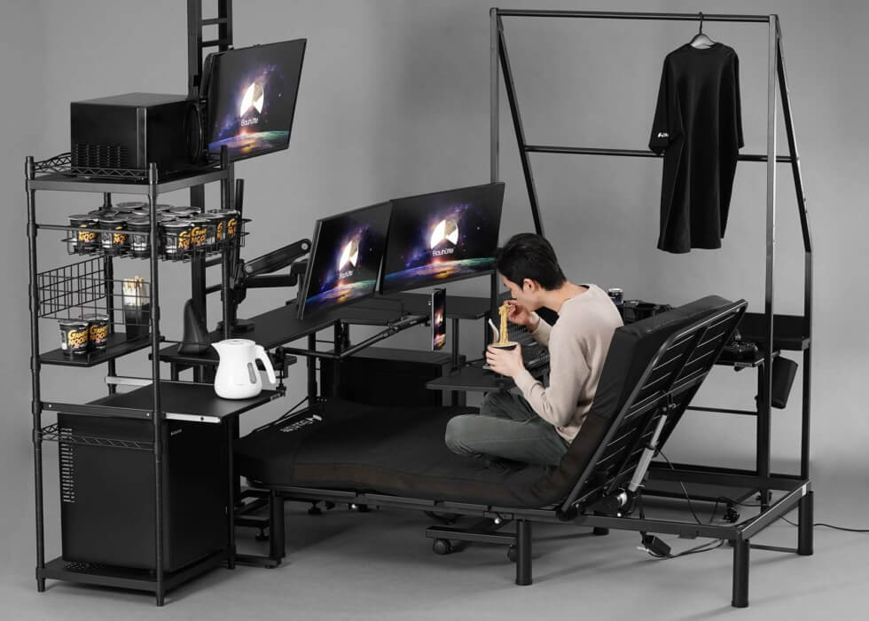 The BGB-100FA is certainly one of those crazy products you can find in Japan. However, if you prefer to sleep and wake up in front of your gaming rig, this is definitely for you. Bauhütte’s catalog also offers more accessories to let gamers build their dream setup. So far, the list includes an all-in-one clothes rack, a storage unit, a tray for your snacks with a cup holder, and so much more.