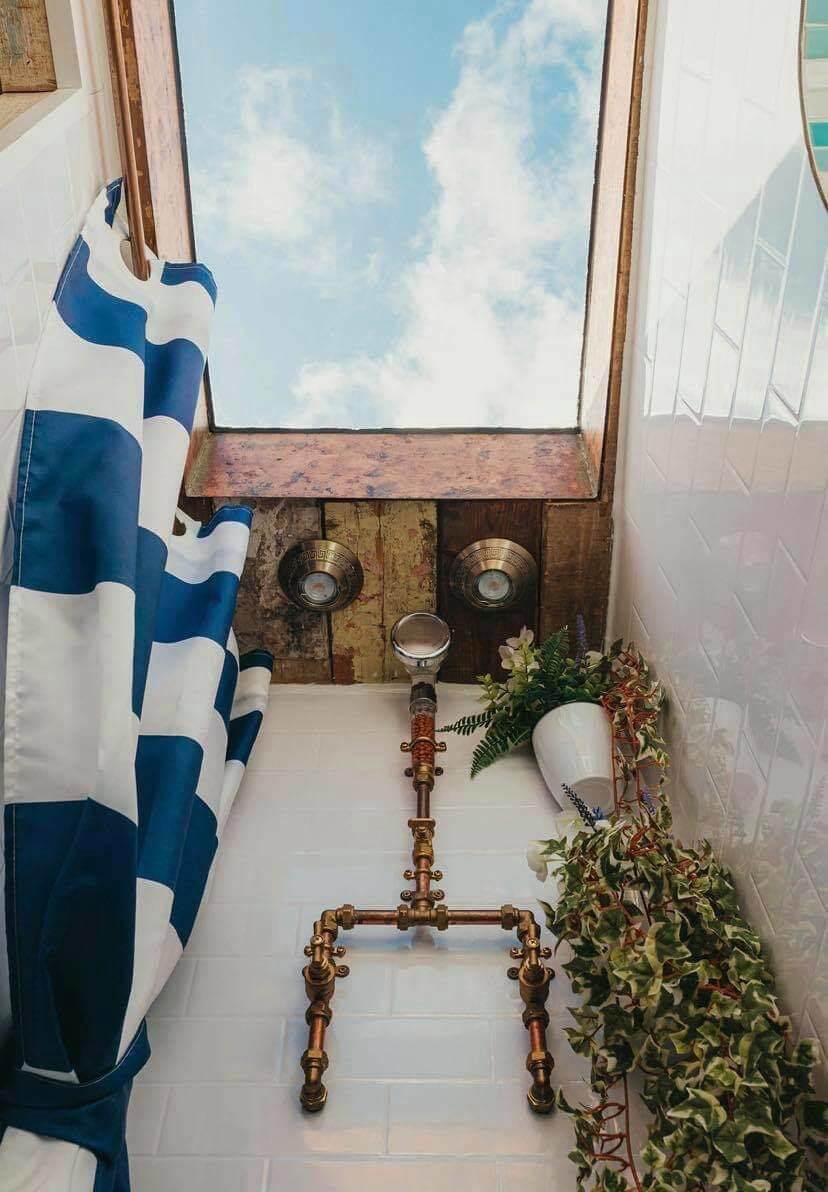 The openness of the Supertramped Co T2 Camper Van extends into the bathroom, with the shower stall that features a skylight. You won’t find that on most camper vans, we can guarantee you that. You’ll also find subway tile-inspired wallboards and exposed piping.