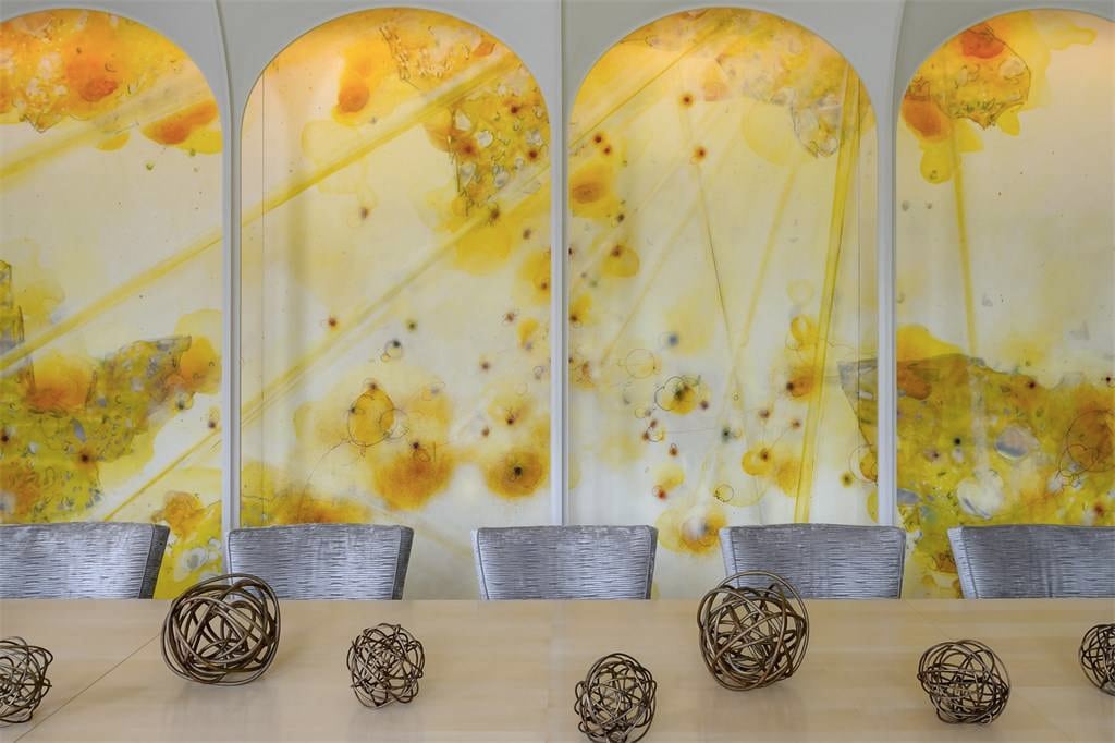 The most striking element of the Beck House, however, isn’t its kitchen. Not the open plan space, though that deserves its share of merits. Not even the pool. The main highlight are the columns, dramatic, sublime, eye-catching. Go beyond the entrance into the hallway and things get even more tantalizing. You’ll find twin staircases with bronze balustrades that curve up to mezzanine levels. The dining room is a vaulted ceiling’s fan heaven, albeit a modernist heaven.