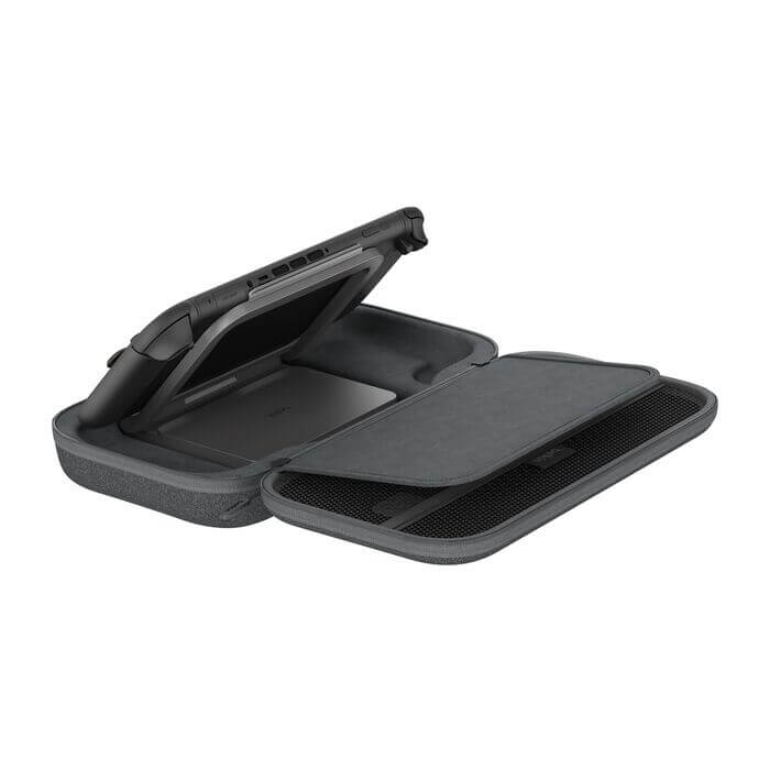 A sturdy hinge mechanism allows us to prop up the Switch 2 at various angles. An LCD status screen accurately shows the remaining power. Precision cutouts within the Charging Case Pro hold everything in place during transport.