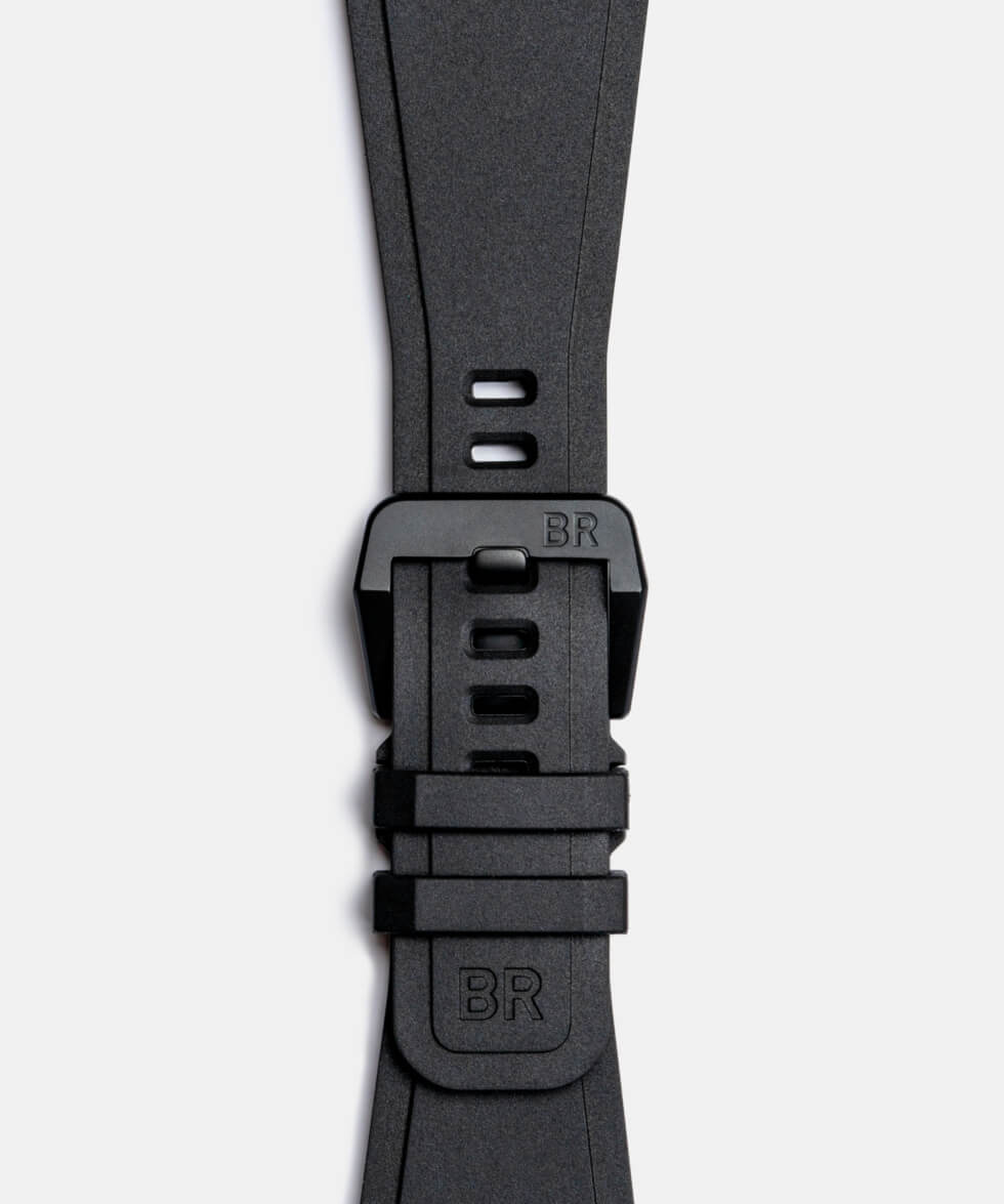 Bell & Ross says the watch is water-resistant up to 328 feet. Each BR-03 Astro includes a black rubber/synthetic textile strap and a black PVD steel pin buckle closure. In summary, astronomy enthusiasts will find it a classy accessory that caters to their interests.