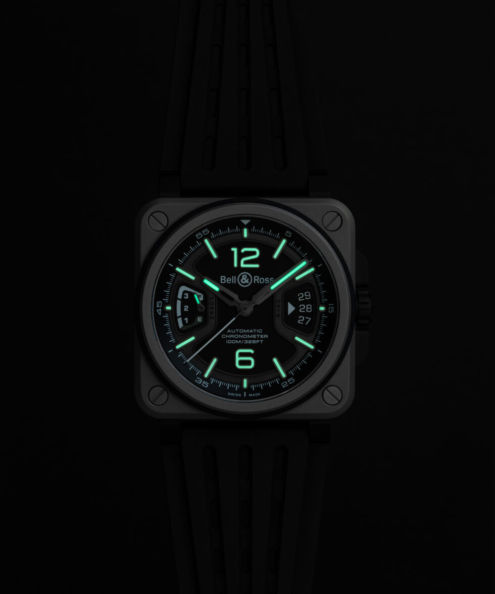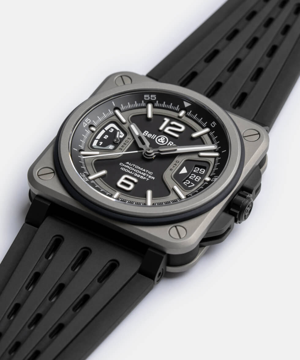 Elsewhere, its subsidiary indicators include a date window at 3 o’clock and a power reserve indicator at 9 o’clock. A screw-down crown with guards takes up the right flank of the case band. The BR-X3 collection relies on a BR-CAL.323 self-winding caliber.