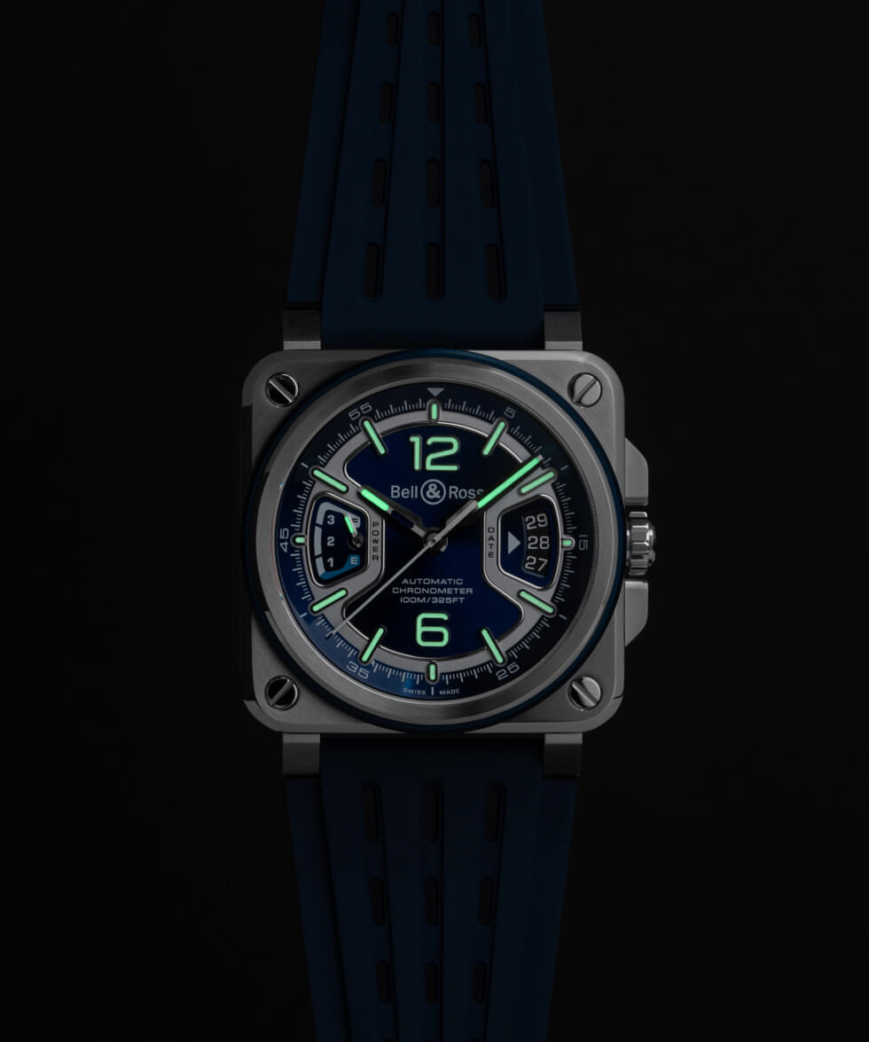 The BR-X3 collection seems to be the latter, but in a good way. Both tout a 41-mm-wide case with a thickness of 13.30 mm for the Blue Steel and 13.3 mm for the Black Titanium. We’re looking at a three-plate layer construction for the dial.