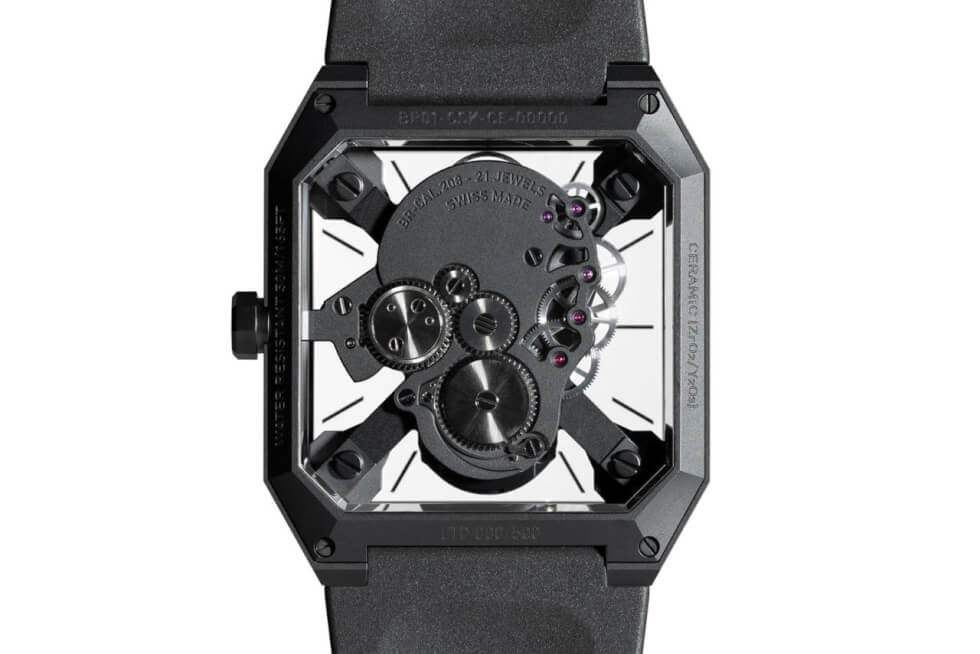 The matte black ceramic beveled case measures 45 mm high and 46.5 mm wide. It may look grayish in some of the images, but it much darker than what it seems. This is not the first wristwatch from Bell & Ross that uses a skull motif. However, comparing it to previous models with a similar design the BR 01 CYBER SKULL is perhaps the more stylish and modern among the bunch.