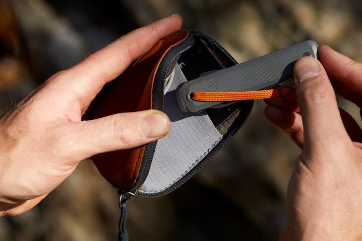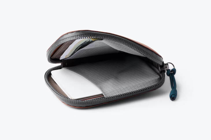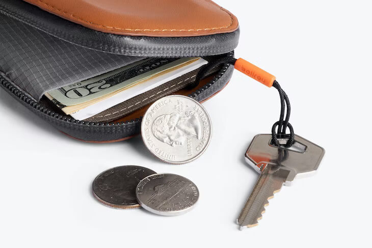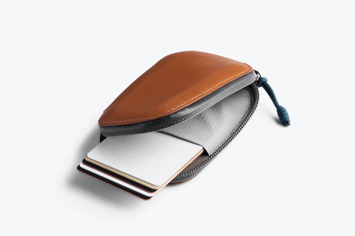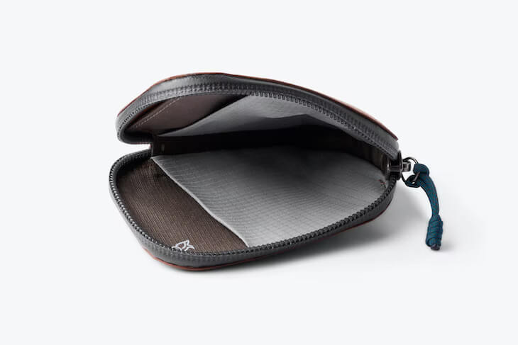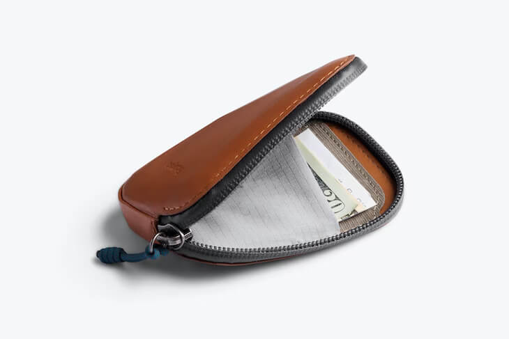 The Bellroy All-Conditions Card Pocket is a flexible storage option. The interior comes with a couple of stretch mesh pockets on either side and each can hold five cards or folded bills or other small items. Then there’s also a raised pocket inside for your coins and an elastic key loop that can hook up to two keys.