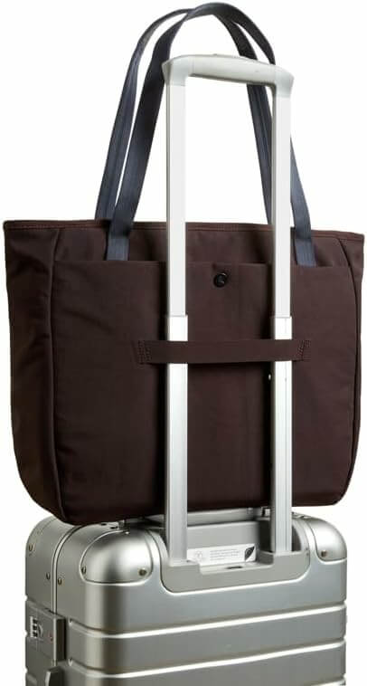 Bellroy’s Tokyo Wonder Tote also now has a document slip pocket with a button enclosure on the back of the bag. Then on the front is a trolley pass-through that slides onto your luggage or suitcase handle for hands-free carry while breezing through the airport. The triangular shape of the tote also makes it fit under your arm down the plane aisle. It also features soft-edge webbing handles with underside grip for in-hand or on-shoulder carry.