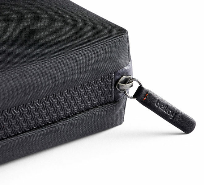 In this case, the Bellroy x Carryology Tech Kit has been given a hardware and material upgrade including water-resistant YKK zippers and fabric to keep your gear dry and protected. The custom Auxikko pattern on the fabric is a hybrid of the ancient hexagonal Japanese Kikkō pattern, which is used in armor and auxetics. It is known to grow stronger under stress thus providing this case its incredible strength and performance. The pattern also gives the fabric great handfeel and grip.