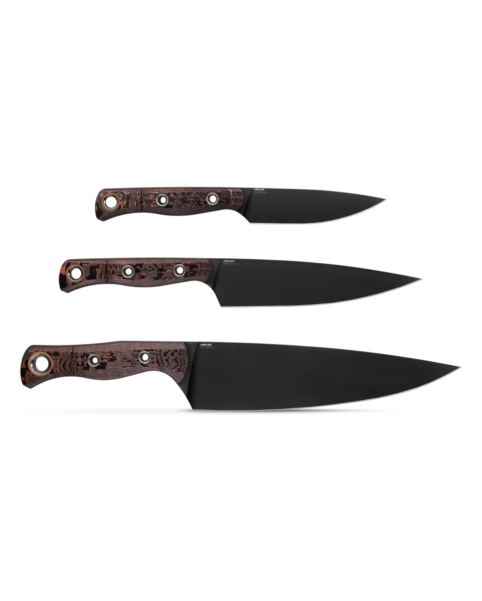Any chef or culinary creator knows that meal preparation and presentation require only the best knives the market has to offer. Oregon-based outfitter Benchmade continues to impress with its vast collection of cutlery blades and its latest offering, a 3-piece set in Camo Copper Fatcarbon, combines both stunning aesthetics and function.