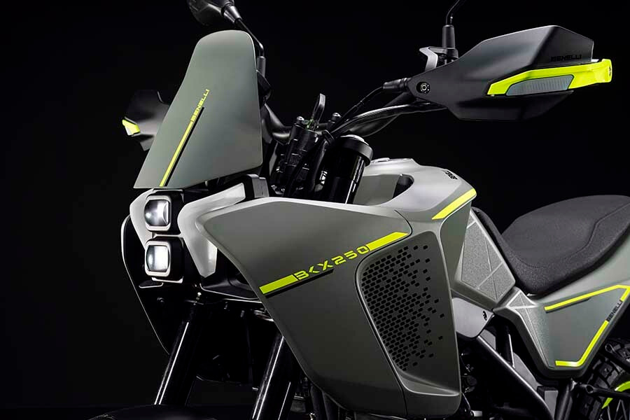 We have a 280 mm floating disc with a four-piston caliper up front, while the rear gets a 240 mm disc and single-piston caliper. Next, is the 19” wheel shod in 100/90 tires and 17” rim with 140/80 rubber for the front and back respectively. The BKX 250 is outfitted with a 250 cc, liquid-cooled, four-stroke single-cylinder mill. Benelli says it’s good for 25.8 horsepower and 15.50 lb-ft of torque.