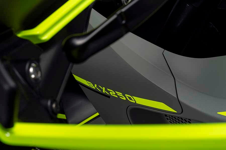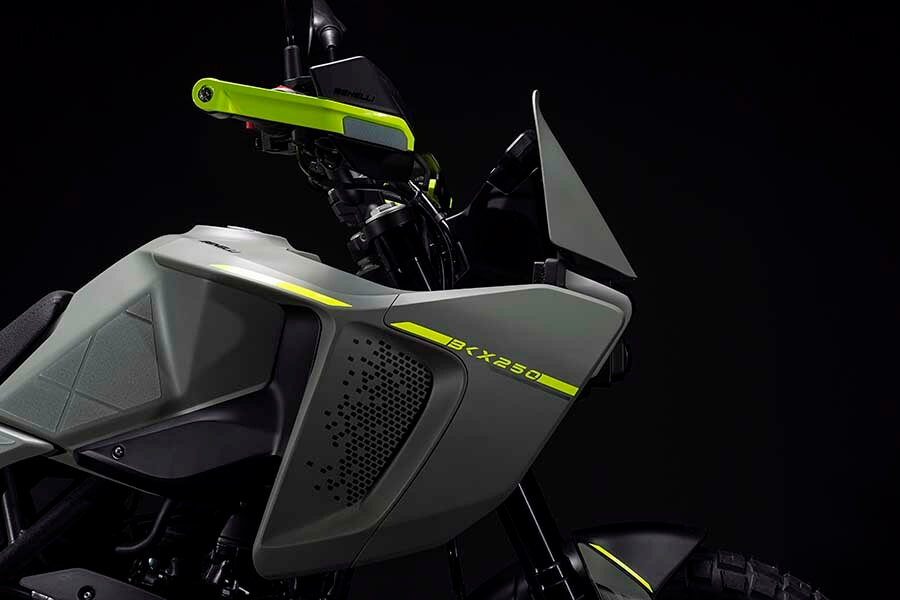 The BKX 250 optimizes handling with the help of its steel trellis frame and suspension setup. At the front is an upside-down fork with a 180 mm travel. Meanwhile, the rear gets “a monoshock with progressive linkage adjustable in the spring preload” with the same travel distance at the wheel.
