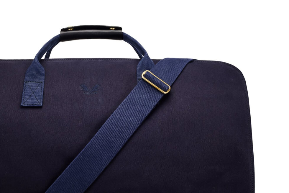 Designed for travel, the exterior of the suit carrier uses 24oz British dyed, waterproof cotton canvas. Meanwhile, the holdall is from lightweight British dyed and proofed 180z canvas twill. It features solid brass hardware welded in London, YKK golden brass zippers, and premium vegetable-tanned Italian leather.