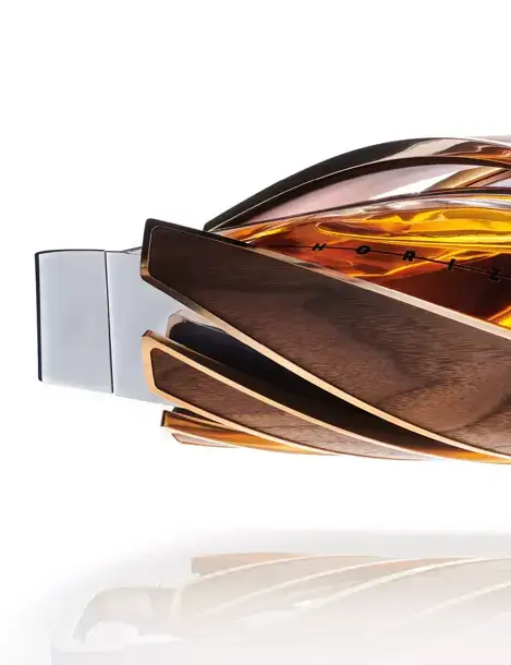 While most decanters are generally designed to stand upright, the Horizon includes a base to hold it horizontally. As for the whiskey, it touts a dark mahogany hue when viewed directly in the bottle or when poured for serving. The nose is described as that of raisins, sultanas, nutmeg, sweet cinnamon, cloves, fresh leather, dark cherries, polished oak, and plums.