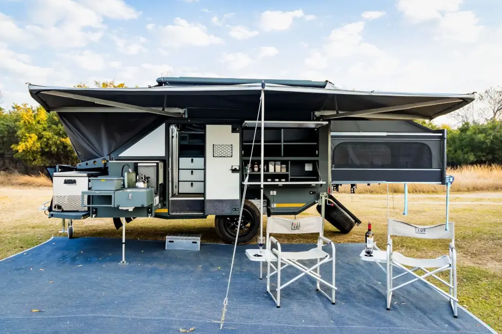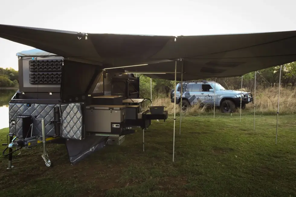 Berg Offroad added the CX4 to its lineup of camper trailers following the release of the CX6 and the CX3. This caravan expands into a comfortable mini-lodge to sleep four.