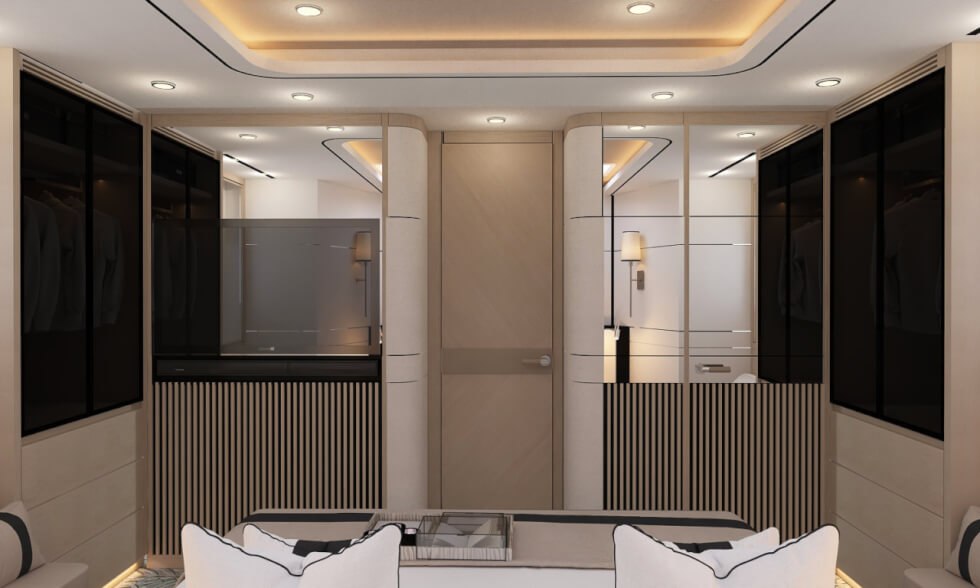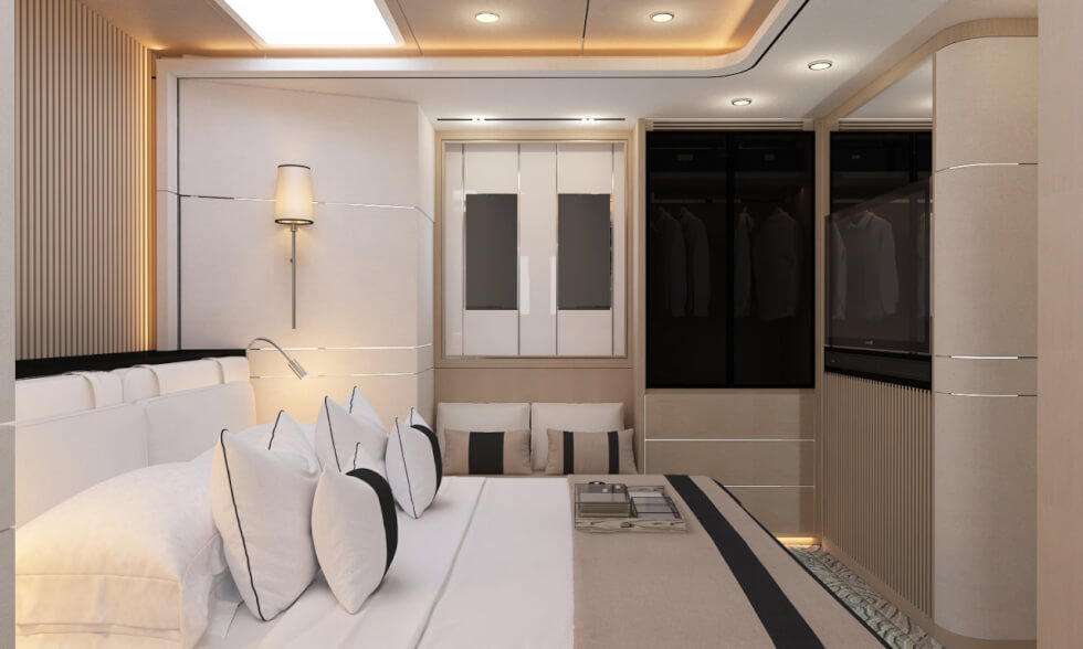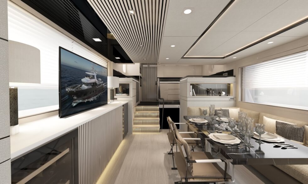 By default, the main deck of the B72 is where you can find the pilothouse, salon, and galley. As for the lower deck, Bering Yachts says the standard layout has a full-beam master suite along with three guest cabins. Finally, we have the boat deck with space to hold one large and two smaller tenders.