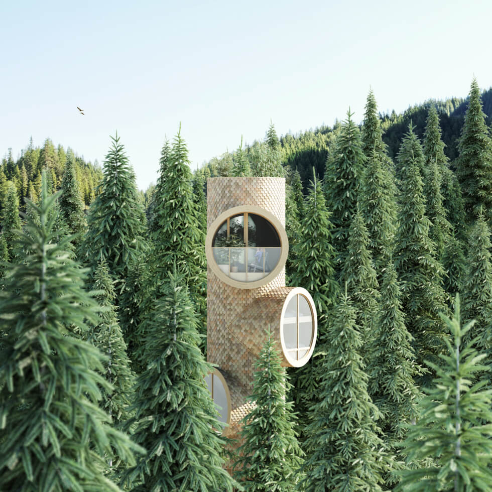 Penned by Precht, these tubular dwellings are a modern take on the traditional treehouse. There are a total of four currently available for guests to stay in. You can find the Bert as an extra attraction at the Steirereck am Pogusch restaurant in Austria. These rise amid a lush forest, which adds to its mystical appeal.