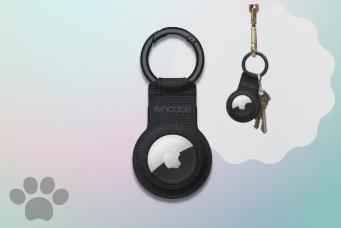 This sturdy, user-friendly keychain makes a great solution for clipping your AirTag onto your pet’s collar. The soft silicone is easily cleaned and flexible enough that you can insert the AirTag without struggle, but it’s durable and will resist impact, scratches, and even chewing. The accompanying metal ring will securely lock the AirTag case onto your pet’s collar (or your keychain) so you can track them anywhere, anytime.