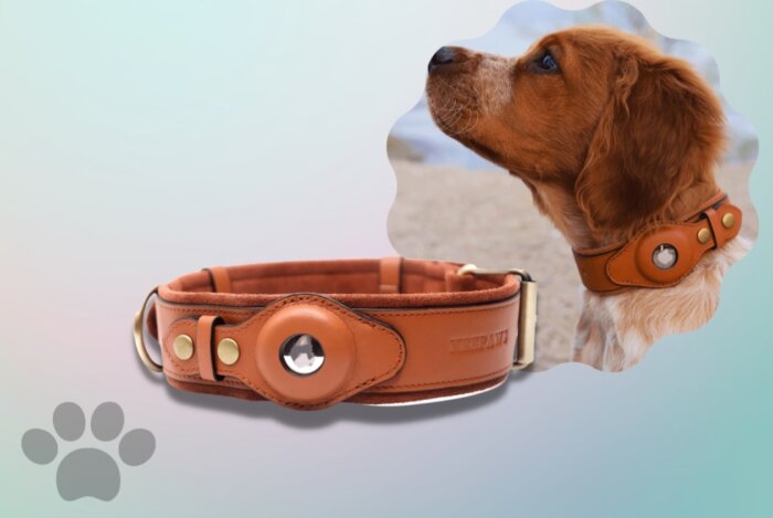 - Key Feature: Full leather collar with integrated AirTag case, waterproof and adventure-ready