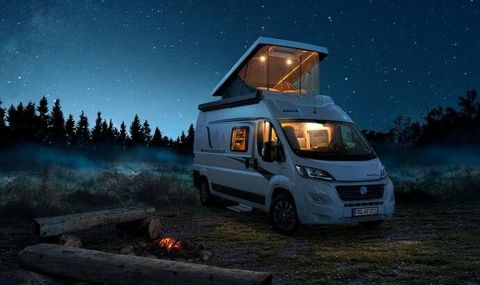 The interior is also optimized to increase comfort, with plush seats, built-in infotainment and entertainment technology, and fully modular spaces that can be customized uses Fiat’s next-level solutions. It’s best-suited for a couple wanting to adventure travel the world in style, with a beautifully sized bed, simple built-in kitchen, and plenty of rooftop storage for your gear, supplies, kayaks, canoes, bikes, skis, and snowboards.