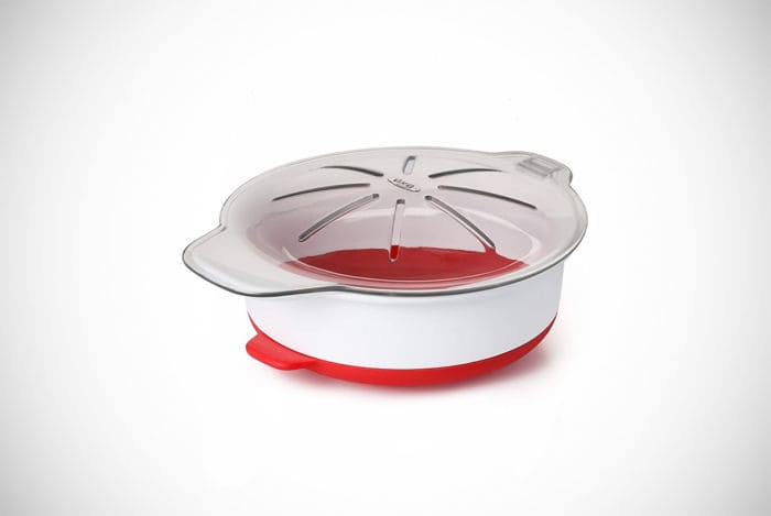 First in our look at microwave egg cookers is this great little thing from OXO and their Good Grips range. If the thought of fluffy scrambled eggs or a nice fried egg sandwiches in the morning gets you eggcited, then look no further than this. For a relatively low price you get a cooker that is wide enough to make it easy to just whisk those eggs inside it, so you don’t have to use any more crockery and cookware than necessary. It’s been designed with three different parts, so that the lid can be removed and the main body too, when you need to transfer your eggs from the red base to plate or sandwich.