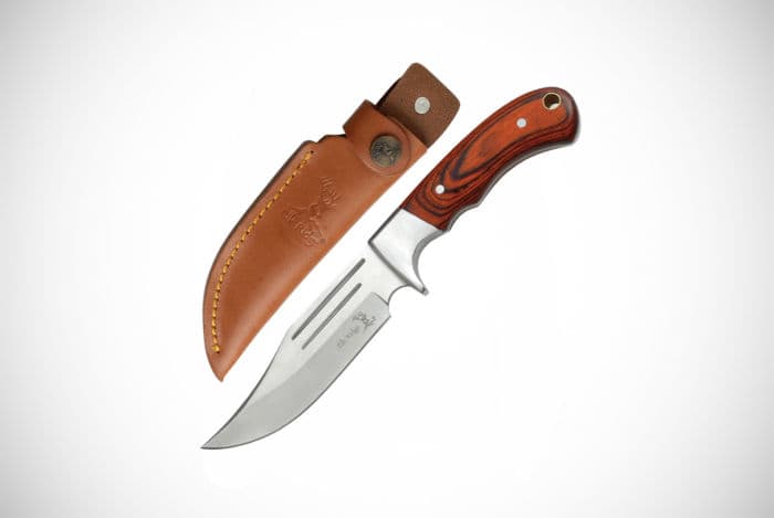 Made from a high carbon stainless steel, this blade will be ideal for skinning smaller game or just as a general purpose knife while out hunting. Lightweight but incredibly sturdy, this knife is also available in three different colors. Carrying it can be done via the included attractive sheath or you could just pop it into any pocket on your body.