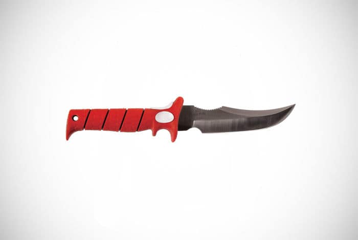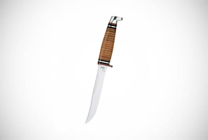 The blade itself is 10-inches in length and is made from a strong and thick stainless steel. You’re also treated to a handcrafted sheath which matches the quality of the knife itself. All in all, this is what we’d class as a premium hunting knife rather than one you’d want to actually use too much. Did we also mention that this knife is so cool that it’s been featured in numerous movies?