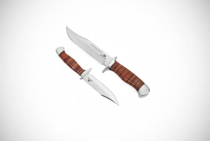 One blade is four inches while the other is six inches and between the two clip point blades, you’ll be more than able to perform a multitude of hunting and survival tasks when out in the wilderness. They are made from a strong and durable stainless steel with each coming with an impact nylon sheath that will increase safety and portability.