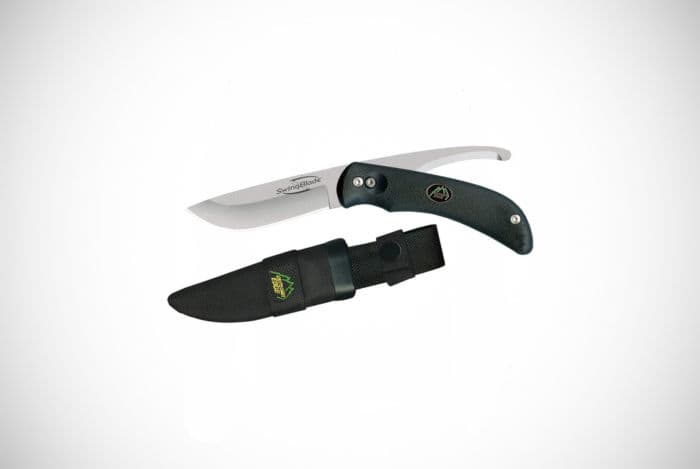 How about this for something a little unique and innovative? This Outdoor Edge is essentially two blades in one using a rotating mechanism. On one side you have a 3.6” skinning blade and on the other a 3.2” gutting blade. Both are made from a good quality AUS8 stainless steel and they are supported and encased (when not in use) by a rubberized non-slip TRP handle.
