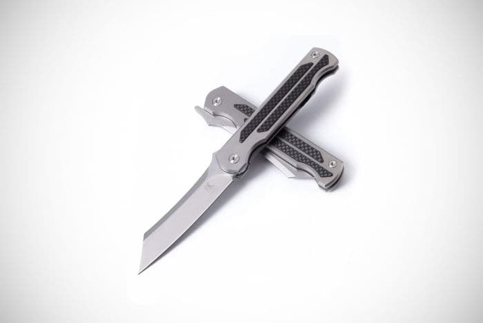 Another fantastic looking folding knife is this little masterpiece by KATSU. Here you get an oriental take on what the best folding knife should look like and we have to say that it functions just as good as it looks. It has a small but effective 3.9” steel blade, a titanium and carbon fiber handle, and comes packed with a leather sheath and pocket clip.
