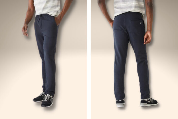 The French cotton terry cloth is soft to the touch but wonderfully durable, and they’re lightweight and breathable enough that you’ll never have to worry about “swass” (look it up in the Urban Dictionary to see what I mean). They’re also surprisingly affordable considering the brand, and you’ll find they’re some of the best-fitting, best-looking, and most comfortable sweatpants you could own.