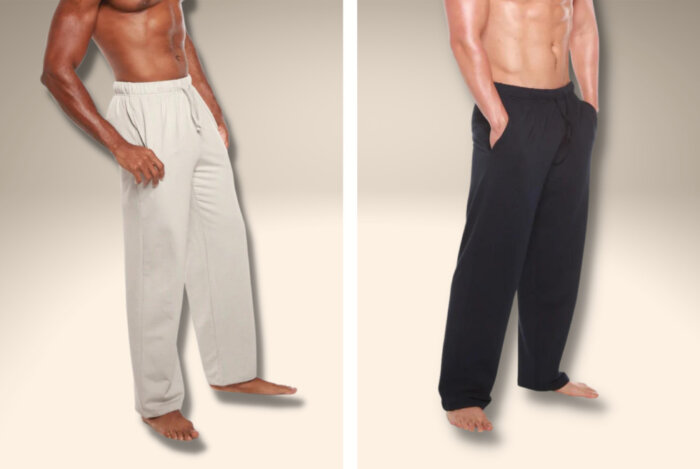 - Breathability. You want to ensure all your important “downstairs bits” can breathe in your lounge pants (and the underwear beneath), even when sitting all day on a couch or in bed. That means fabrics like cotton that naturally breathe, or feature mesh panels (made from polyester) that allow for good air flow.