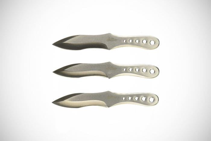 For the height of reliability, choose this set of SOG Fling Classic Throwing Knives. The three-piece set has blades with a Rockwell Hardness score of 49 to 51, meaning they could easily be considered as tactical knives too.