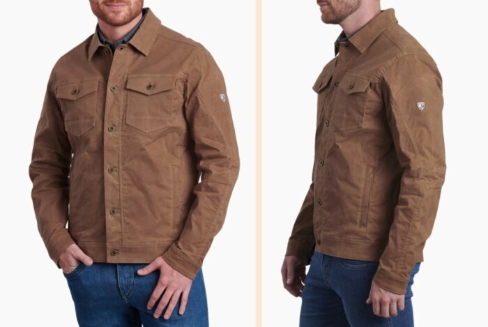 If you want tough and manly, go for KUHL. The Outlaw Waxed Jacket is cut in a trucker style that has just enough of a “bad boy” look that you’ll love it, even if you’re just running errands or taking the kids to the park. The articulated design gives you total mobility of your arms and shoulders so you’ll never feel stifled while wearing it. Add to that the streamlined fit and comfortable cut, and you’ve got yourself a winner.