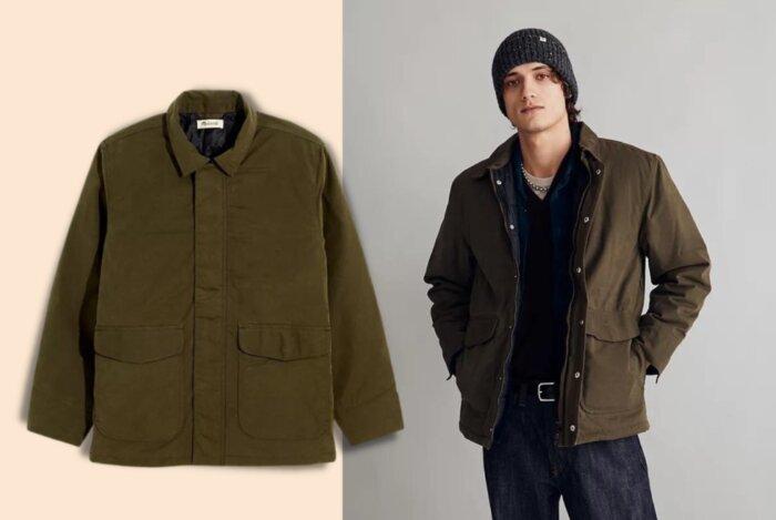 For those days you’ve got to spend working in the snowy, windy, or rainy outdoors, you’ll be glad you’ve got this jacket on. Madewell combines the waxed cotton exterior with a quilted inner lining that offers excellent insulation. When the rain or snow is really coming down, just pull up the hood to cover your head, and bask in the warmth offered by the inner lining. The jacket also comes with two drop-in pockets and an interior pocket great for storing your wallet, phone, and other items you want to keep fully dry.