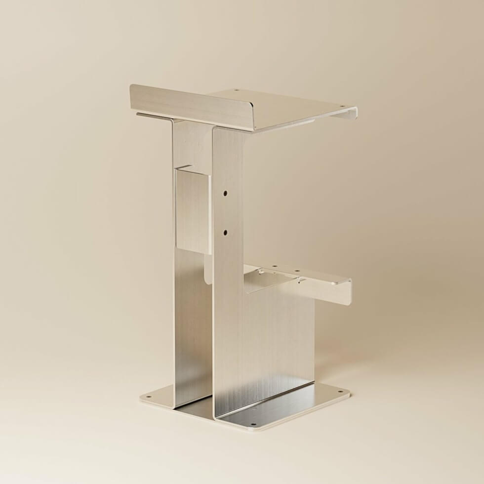 American brand Bestcase celebrates the rawness and functionality of aluminum with the Foundation bar stool. Designed by co-founder Charles Constantine, it debuted in 2022 as part of a collection built from aluminum sheet material.