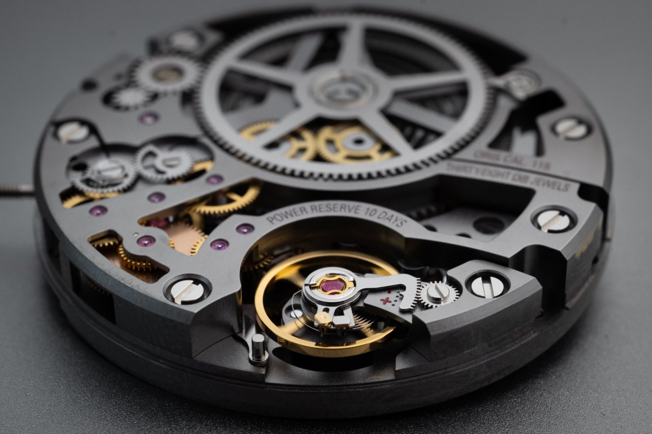 Moreover, the Big Crown ProPilot X Calibre 115 boasts a whopping 10-day power reserve. Making this possible is the huge mainspring visible at the 12 o’clock position just behind the galvanized bridges. Another cool element is the power reserve indicator sub-dial at the 3 o’clock position.