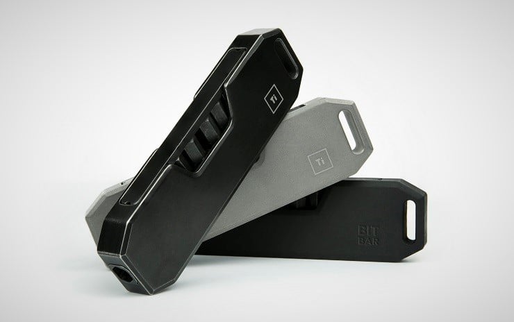 The handles come in two materials and three colors. The grade 5 titanium handles are either ceramic media tumbled grey or a diamond-like carbon black coating. There is also an injection molded fiberglass reinforced nylon handle in matte black. If that isn’t enough, the deluxe model also comes with a specially designed three position ratchet. Air travelers need not worry as the Bit Bar has been TSA tested and approved as a carry-on item. Details in the video