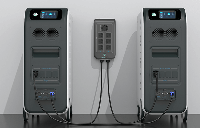 Now on to the accessories. The BLUETTO EP500 Pro has its own fusion box so you can use two machines simultaneously. This doubles the power output and storage capacity using split-phase. Through this method, you can run high-powered appliances.