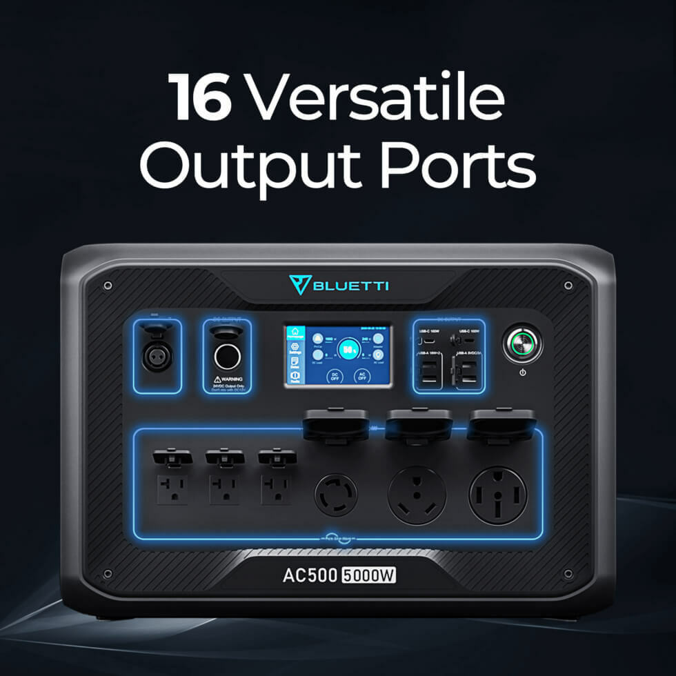 The BLUETTI AC500 is a power station that, like the AC300, does not come with its own battery. As such, it pairs with the B300 battery packs. This means it is a modular generator and an upgrade of the AC300. It can go as high as 18.432W when connected with six of the expansion batteries. It is capable of 5000W pure sine wave output (10,000W surge) and has a built-in UPS System, so you have an uninterrupted power supply 24/7.