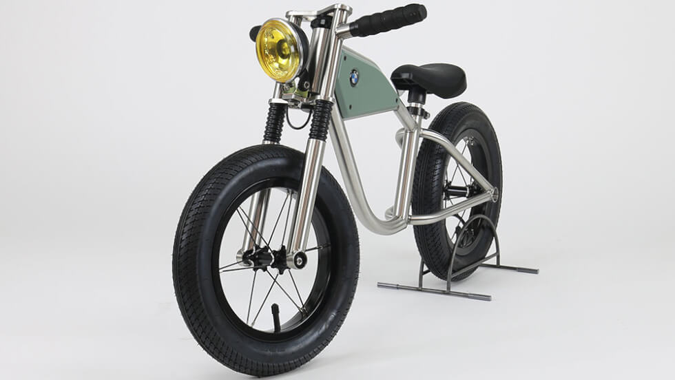 The connection here is a custom BMW moto crafted by Heuer for his friend. The balance bike should, in theory, give dad a platform to ease his boy into the joys of riding motorcycles. Thus, considering the beginner-level experience that he will be dealing with, this seems like a perfect machine for it.