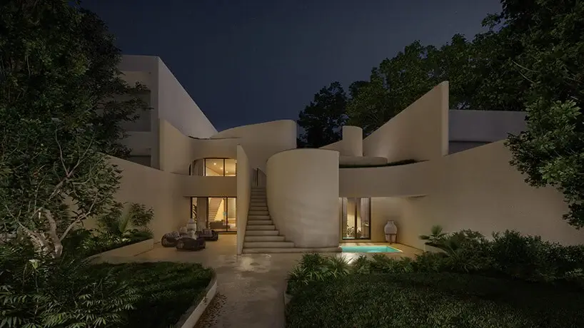 Iran-based studio Team Group designs a residential property with a sculptural style that leans heavily on curved walls. The “Bohem Project” looks majestic from the outside but more so on the inside with its vast interior space.