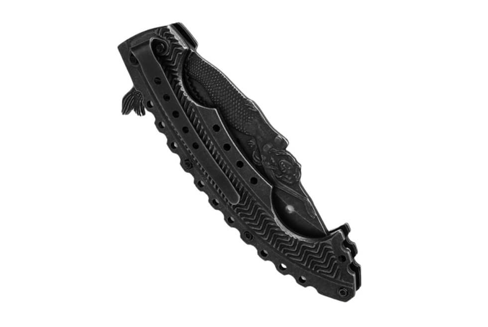 Then you have the stainless steel handle that’s 5″ long, 0.53″ thick, and 1.05″ wide giving you a folder that’s an overall length of just 8.75″. That’s a good size folder that you can stash safely in your pocket or your bag. Boker’s Tactical Mermaid Pocket Knife even comes with a tip-down pocket clip for portability. But the best draw in this folder is the intricate theme details included on the surface.