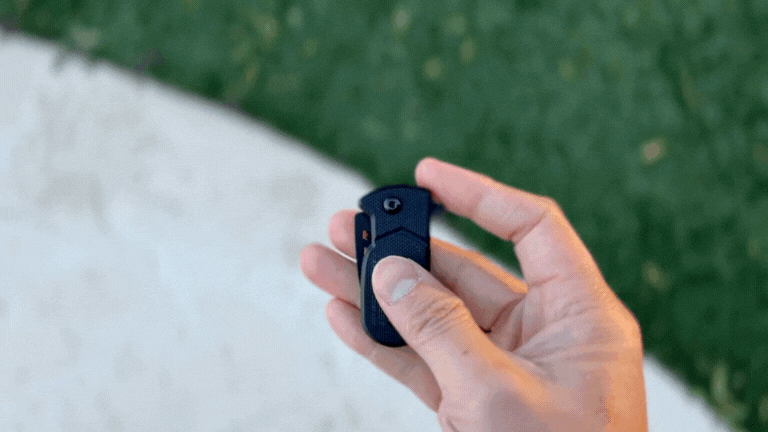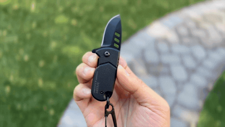 The Speedy can do just about any tasks from opening boxes or packages to cutting or trimming materials like leather. It’s sharp enough to chip away at small branches, prepare food, or open cans during outdoor adventures. Yet it packs small and we mean pint-size small, about the size of your car key only slimmer. It measures 3.74″ long with the blade at merely 1.45″ long (it may seem too small for larger hands) and weighs just 1.6 ounces.
