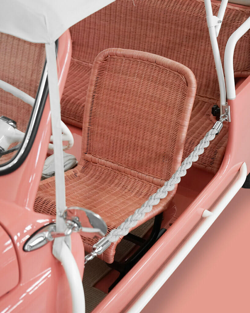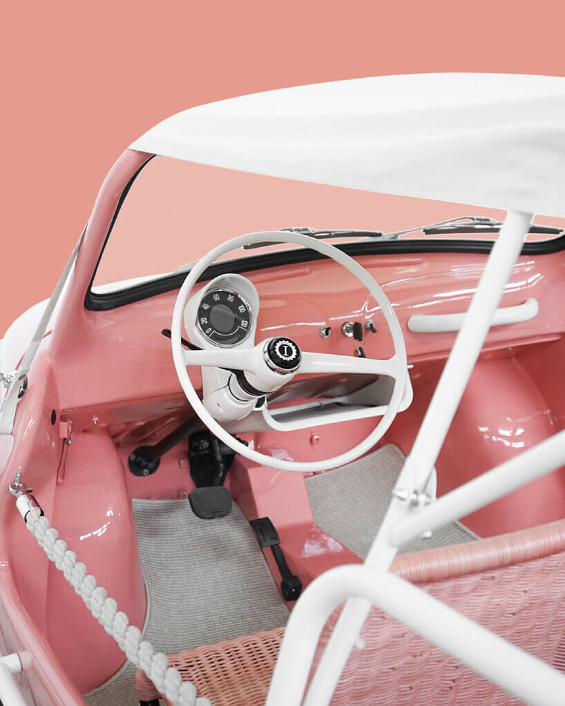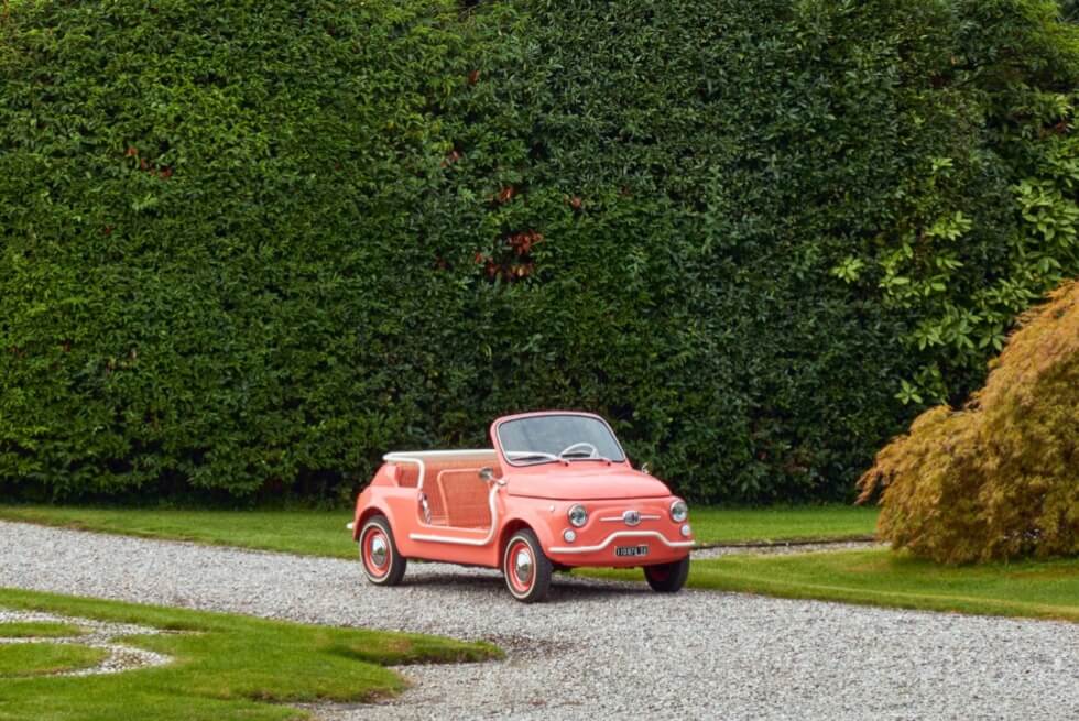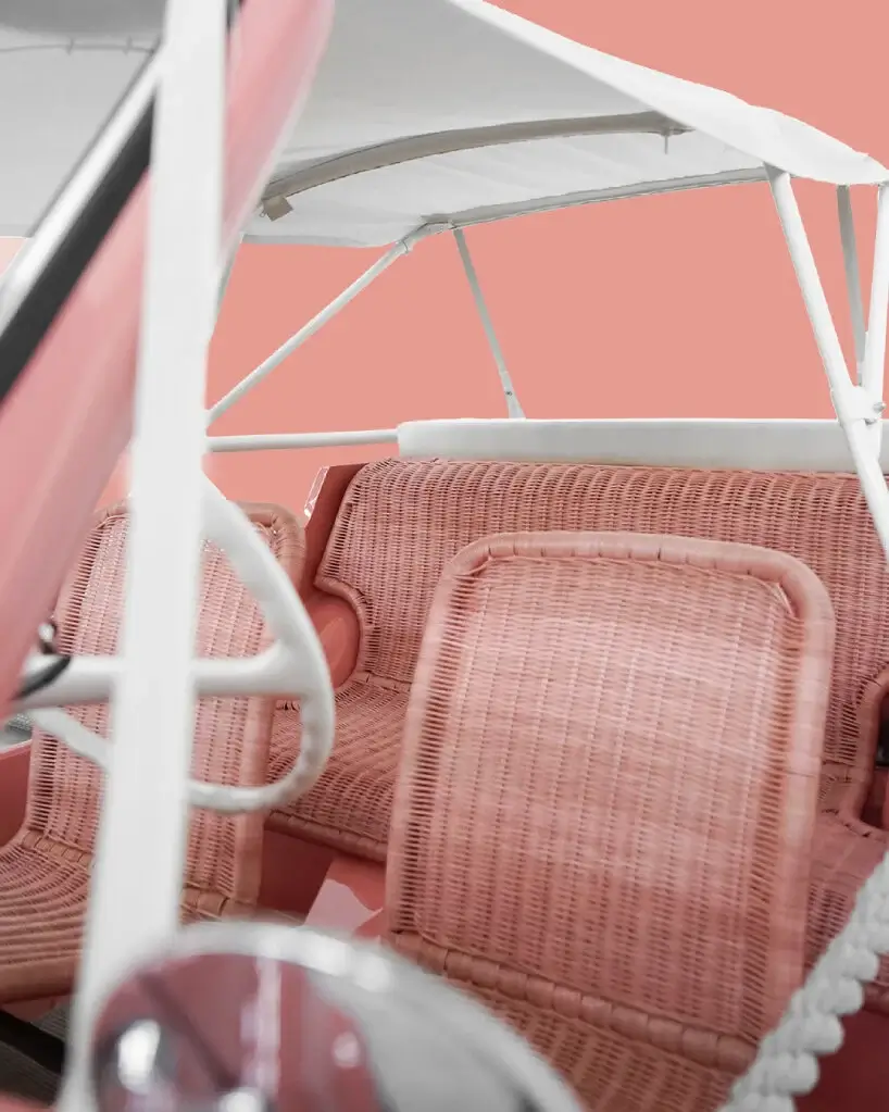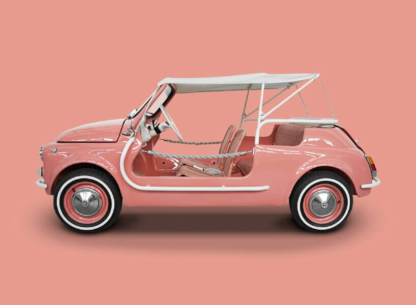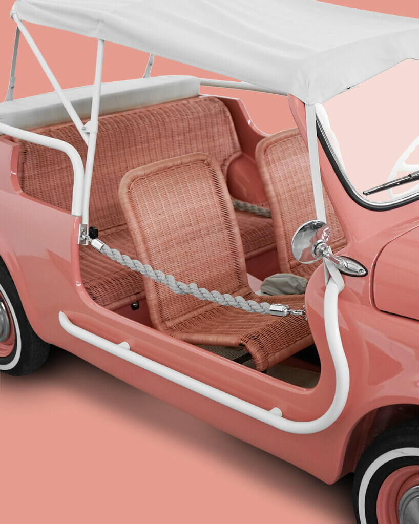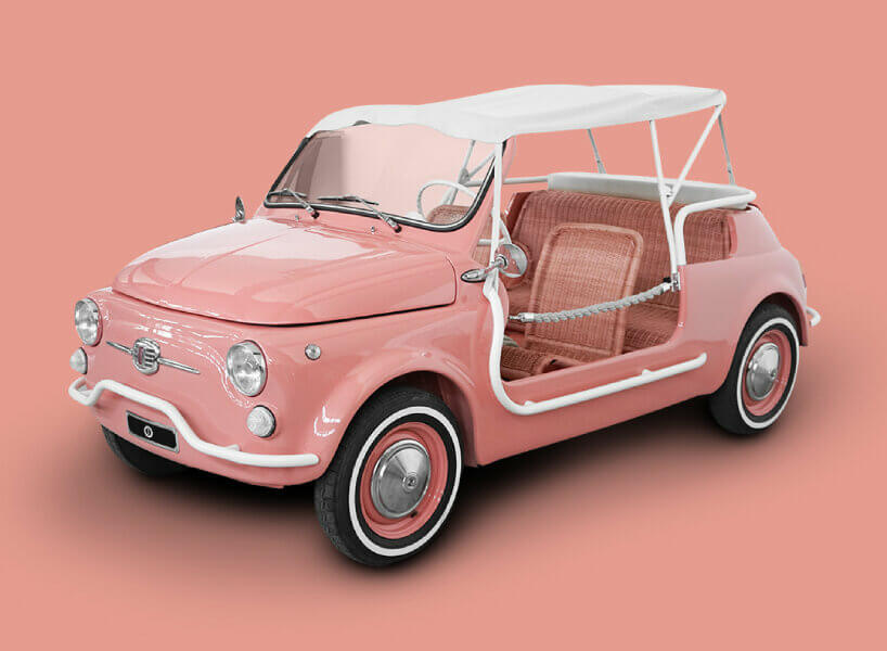 The Fiat 500 Spiaggina pays homage to the vintage aesthetics of the original town car that was launched in 1957. However, instead of coating it in any of the traditional colorways available at the time, it receives a summer pink paint job. At first glance, nobody would guess the donor vehicle behind its bright exterior.