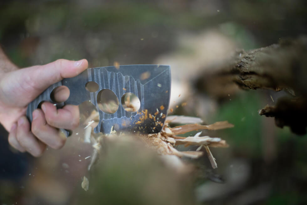 The Axxis Hand Axe is specifically designed for ambidextrous use and the integrated grip holes make sure you get a safe and secure hold while slicing, chopping, cutting, and more. They also let you do more with your fingers without ever having to put the axe down.