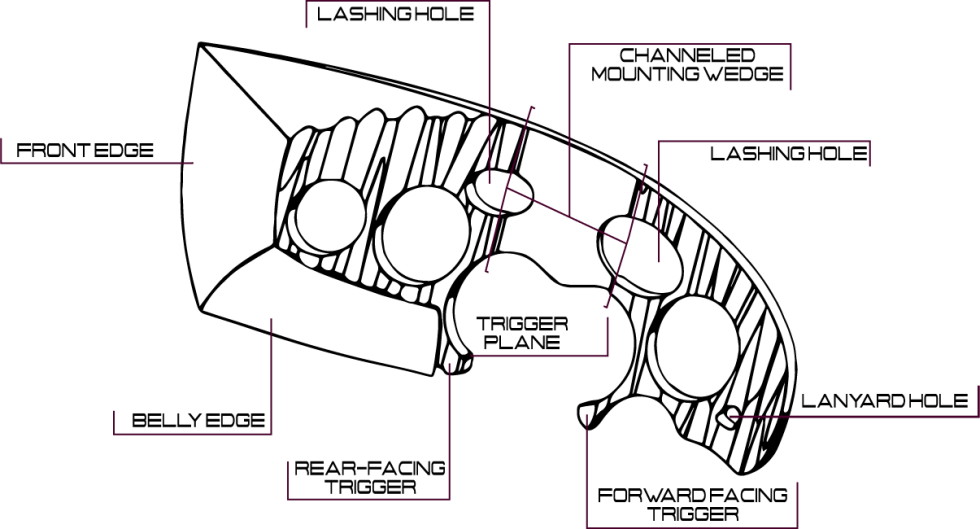 However, for a secure hold during heavy chopping, you can strap the axe to the mounting wedge found in the center to prevent it from sliding forward and back. The combination of the lashing cord and the mounting wedge reinforces the front and rear-facing triggers to prevent slippage.