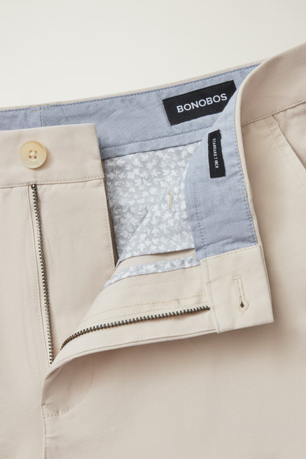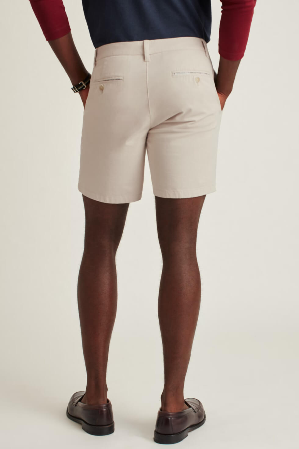 The Bonobos Stretch Washed Chino Short 2.0 comes with a curved waistband with space for a belt. It has a pocket liner in contrasting color and print. Other features include side slant pockets, a side zip pocket, and back button-welt pockets for additional storage.