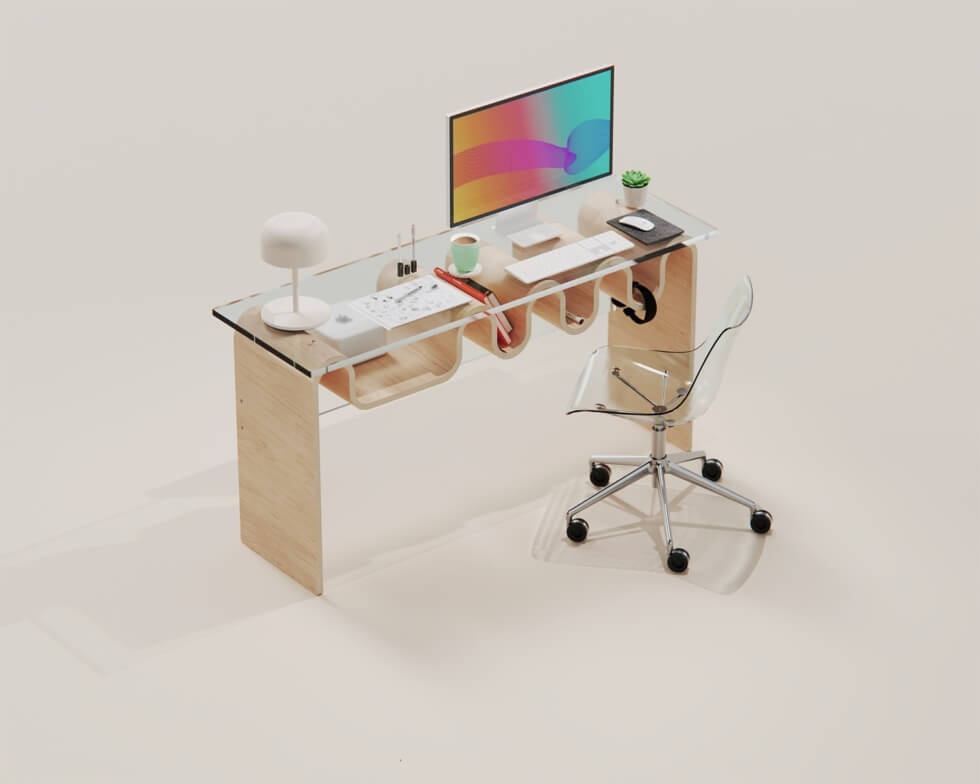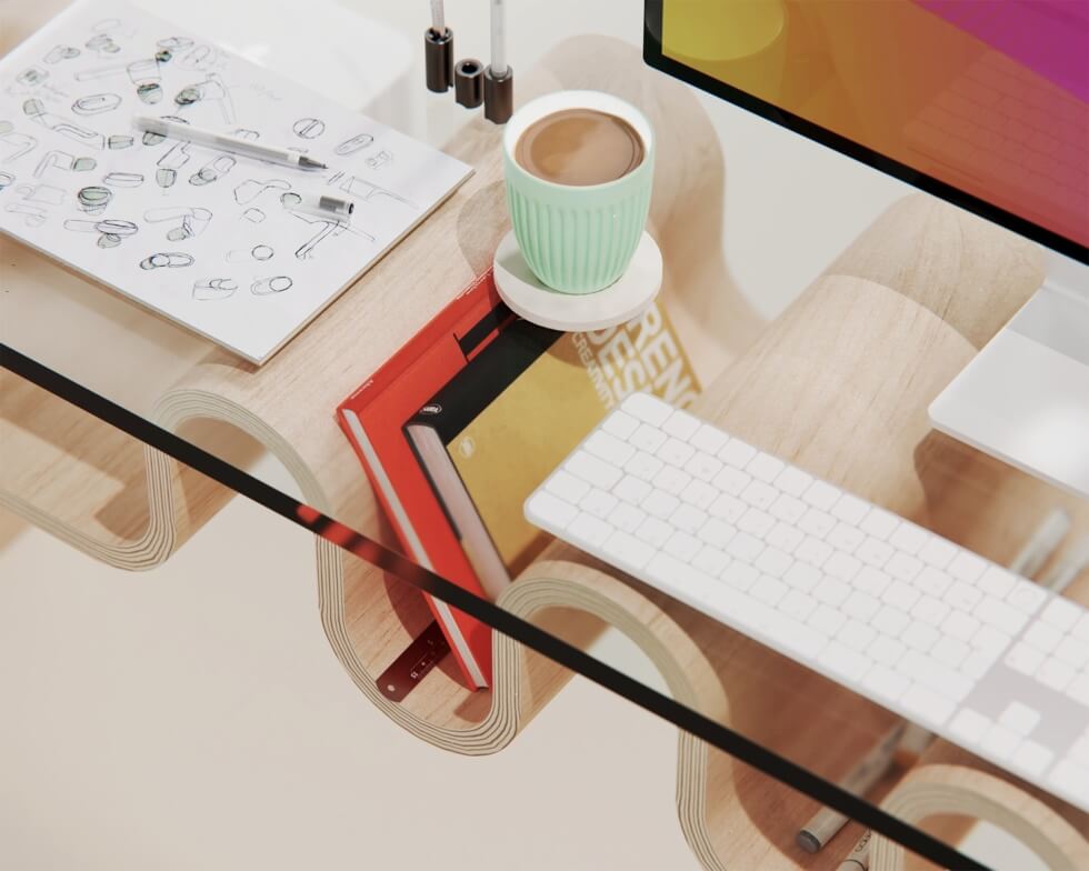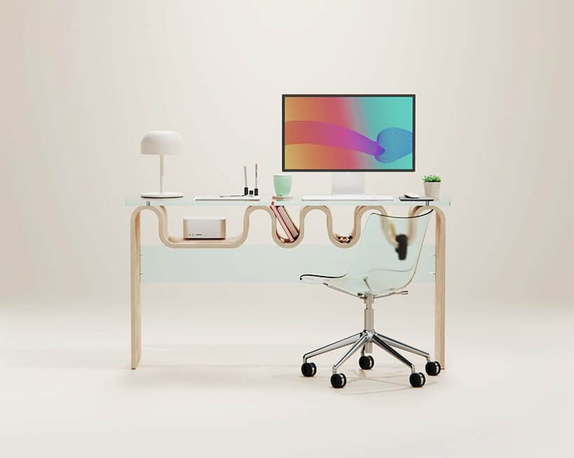 The pockets formed by the undulating curves serve as storage spaces instead. These pockets come in different sizes to accommodate and display various items that you want close at hand. These could be books, pens, and other office essentials. When paired with a glass top, it’s easy to locate these stored items when viewed from the top. This way, reducing the chances of you misplacing them.